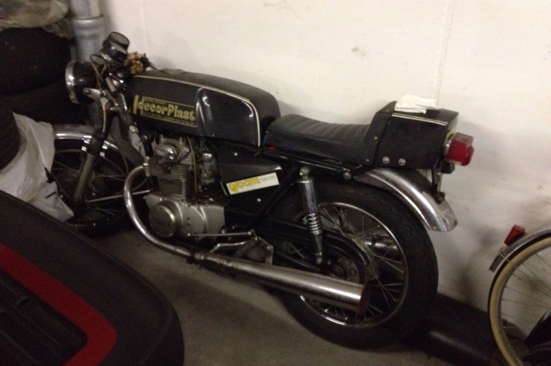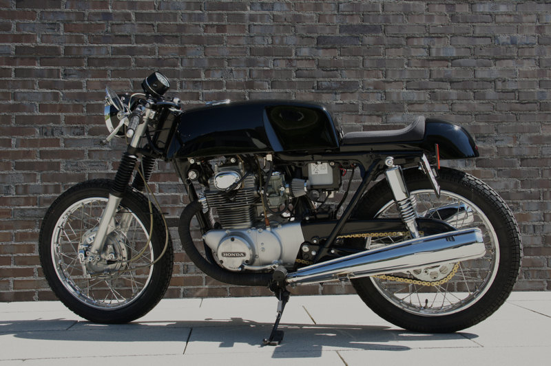 Es war von Anfang an geplant, alle Teile für den Originalzustand der CB 250 K4 wieder herzustellen. Da sie aber zum Cafe Racer umgebaut werden sollte, war auch klar, dass etliche Komponenten nicht mehr ins Bike zurückfinden werden, diese jedoch für einen allfälligen späteren Rückbau in den Originalzustand wieder zur Verfügung stehen sollen. Der knapp zweijährige Umbau begann mit dem Zerlegen der arg mitgenommenen Honda CB 250 K4. Um das Beste daraus zu machen, wurden der Rahmen und alle Anbauteile neu lackiert oder pulverbeschichtet sowie alle Chromteile und Schrauben neu verchromt bzw. vernickelt. Der Motor blieb ungeöffnet. Ausser einer gründlichen Reinigung sowie dem Austausch aller Verschleissteile musste nichts daran gemacht werden. Eine Frischzellenkur (Ultraschallbad) bekam hingegen die Keihin-Vergaserbatterie, die ihre Ansaugluft nun über offene K&N Luftfilter bezieht. Den Auspuff wollte ich beibehalten, einzig die Neigung wurde angepasst. Für die richtige Sitzposition sorgen tief platzierte Stummellenker. Zudem bekam die Honda CB 250 K4 den Tacho mit speziell gefertigter Halterung spendiert. In der neuen Gabelbrücke sind die Kontrollleuchten für «Neutral» und «Licht» untergebracht. Viel Zeit floss auch in die Sitzbank und den seitlichen Kennzeichenhalter.