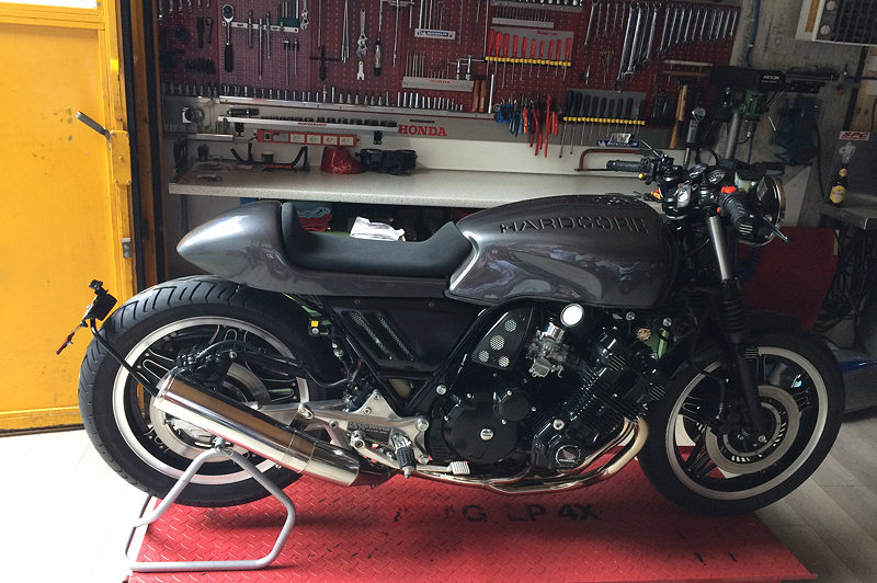 Viel Zeit nahmen die nicht ganz unwichtigen Details in Anspruch. So bekam die CBX 1000 Pro Link neue Armaturen mit speziell gefertigter Blende, eine Cafe-Racer Sitzbank sowie allerlei coole Gadgets spendiert.  Für einen optimalen Sound sorgt die Schüle Krümmeranlage 6-3-1.